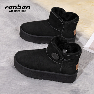 人本雪地靴女款2025新款冬季防水防滑大棉鞋厚底增高短靴爆款高帮