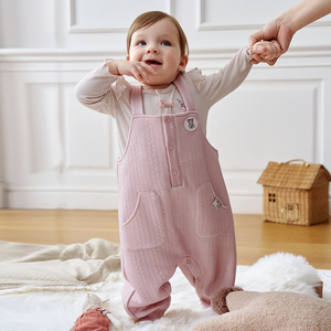 嫚熙童装儿童背带裤秋冬空气棉保暖蓄热连体裤婴幼儿宝宝长裤