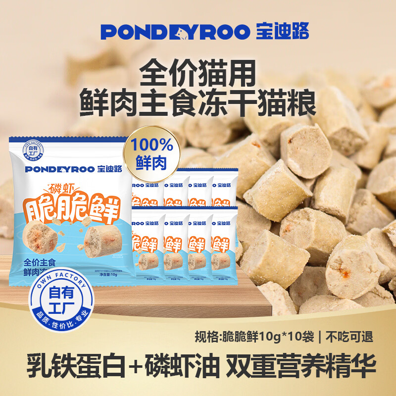 宝迪路全价主食鲜肉冻干猫粮酥脆营养 磷虾脆脆鲜试吃装10g*10包 全价主食冻干磷虾脆脆鲜10g*10包